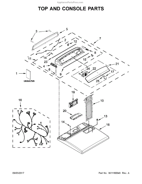 This console is the replacement control panel housing that covers and supports your appliance's user controls, restoring a clean appearance and proper button/knob alignment for reliable operation. What it does