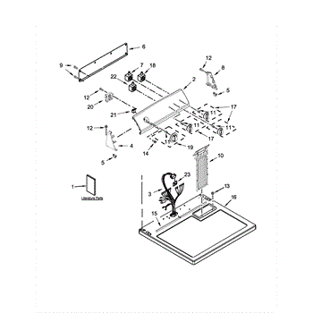The Console Clip is an OEM part compatible with Whirlpool dryers. This clip secures the control console assembly to the top panel, ensuring it is firmly mounted during operation. Properly functioning clips are necessary to maintain the correct alignment of controls and prevent detachment.