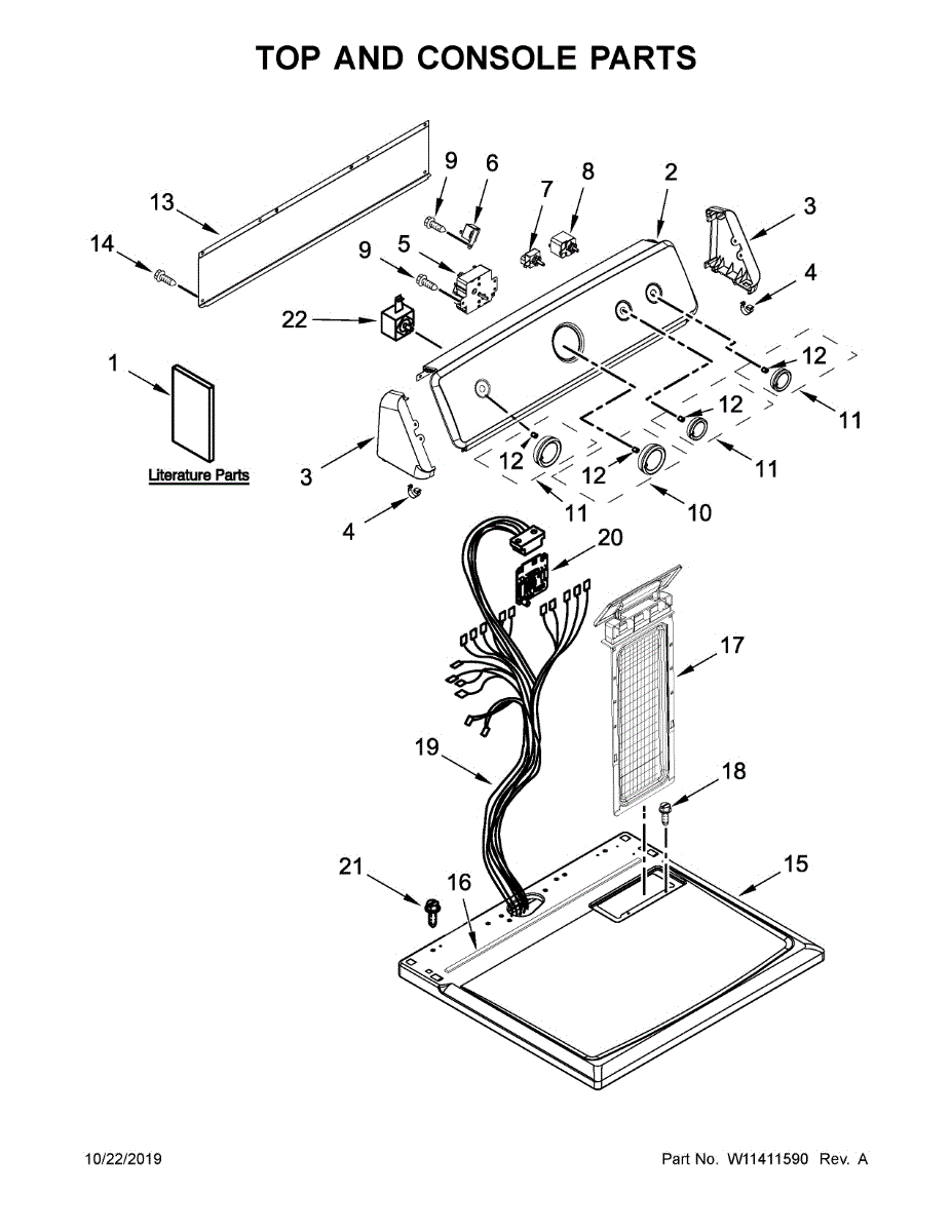 The Console Clip is an OEM part compatible with Whirlpool dryers. This clip secures the control console assembly to the top panel, ensuring it is firmly mounted during operation. Properly functioning clips are necessary to maintain the correct alignment of controls and prevent detachment.