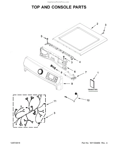 This top panel is the upper cover of your dryer's cabinet. Replace a dented, rusted, or warped panel to restore a secure, flush fit and the clean, finished look of your machine.