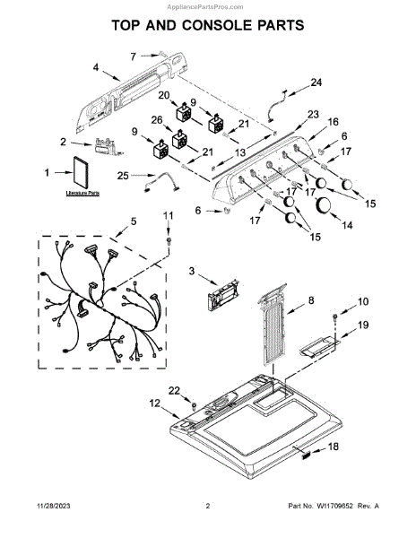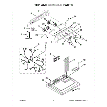 The Console Clip is an OEM part compatible with Whirlpool dryers. This clip secures the control console assembly to the top panel, ensuring it is firmly mounted during operation. Properly functioning clips are necessary to maintain the correct alignment of controls and prevent detachment.