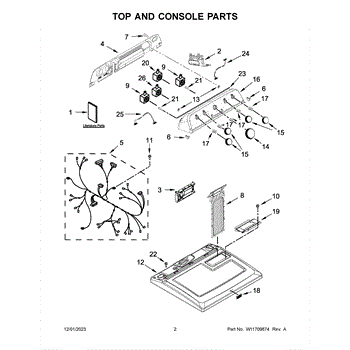 The Console Clip is an OEM part compatible with Whirlpool dryers. This clip secures the control console assembly to the top panel, ensuring it is firmly mounted during operation. Properly functioning clips are necessary to maintain the correct alignment of controls and prevent detachment.