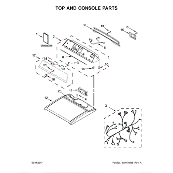 The Top is an OEM replacement part for Whirlpool dryers. It serves as the protective cover for the top of the dryer, keeping dust and debris out while providing a finished look. It is designed to withstand the demands of daily use and provides a sturdy surface for placing items on top of the dryer.
