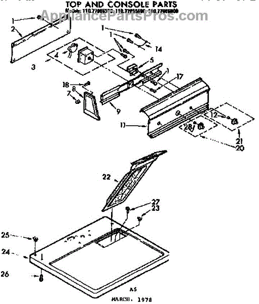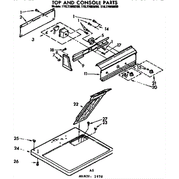 Parts for Sears 11077965600: Top And Console Parts
