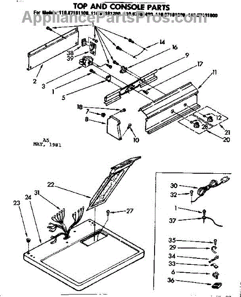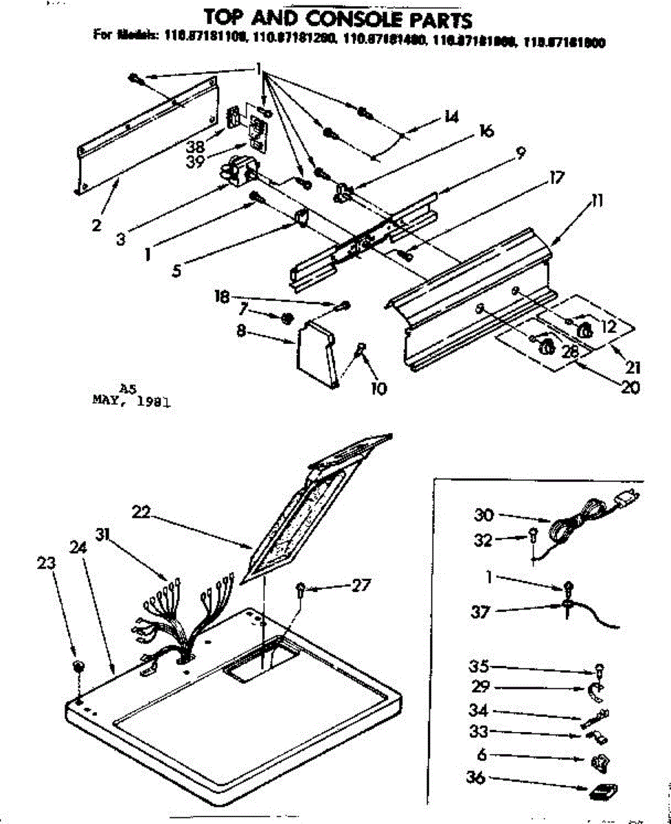 Parts for Sears 11087181100: Top And Console Parts