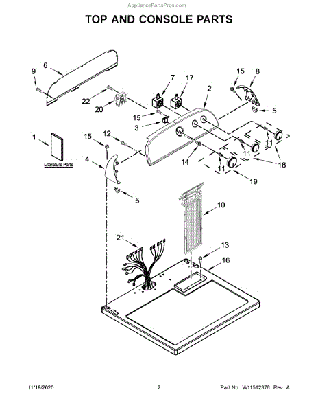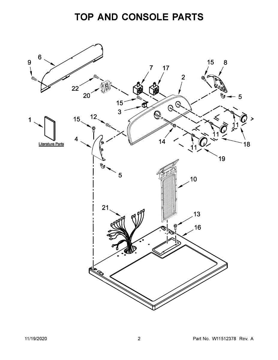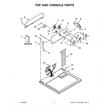 This control panel is the exterior console that houses the washer/dryer controls and user interface, restoring a clean, functional front for the appliance. It replaces a damaged or worn panel to improve operation and appearance. What it does: