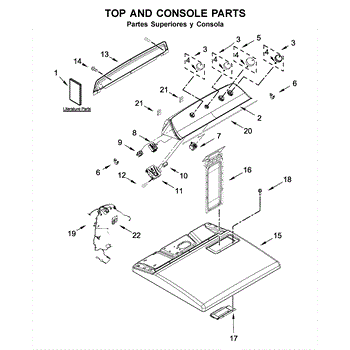 The Console Clip is an OEM part compatible with Whirlpool dryers. This clip secures the control console assembly to the top panel, ensuring it is firmly mounted during operation. Properly functioning clips are necessary to maintain the correct alignment of controls and prevent detachment.