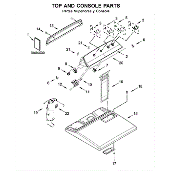 The Console Clip is an OEM part compatible with Whirlpool dryers. This clip secures the control console assembly to the top panel, ensuring it is firmly mounted during operation. Properly functioning clips are necessary to maintain the correct alignment of controls and prevent detachment.