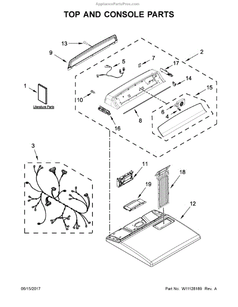 The Console is an OEM part for Whirlpool electric dryers. This console houses the dryer control panel, buttons, toggle switches and electronic display.