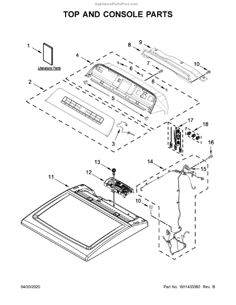 The Top is an OEM replacement part for Whirlpool dryers. It serves as the protective cover for the top of the dryer, keeping dust and debris out while providing a finished look. It is designed to withstand the demands of daily use and provides a sturdy surface for placing items on top of the dryer.