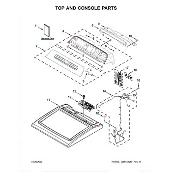The Top is an OEM replacement part for Whirlpool dryers. It serves as the protective cover for the top of the dryer, keeping dust and debris out while providing a finished look. It is designed to withstand the demands of daily use and provides a sturdy surface for placing items on top of the dryer.