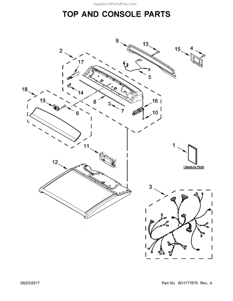 The Top is an OEM replacement part for Whirlpool dryers. It serves as the protective cover for the top of the dryer, keeping dust and debris out while providing a finished look. It is designed to withstand the demands of daily use and provides a sturdy surface for placing items on top of the dryer.