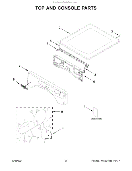 This replacement console restores the user interface and housing that holds the control buttons and display, letting you operate dryer or washer functions safely and reliably. Fits into the machine's front upper area. What it does: