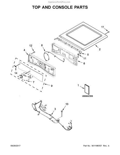 Console shell replaces the dryer's outer control housing to restore a clean, secure surface for the control assembly and controls. It repairs cosmetic damage while providing the proper mounting surface for the control components. What it does: