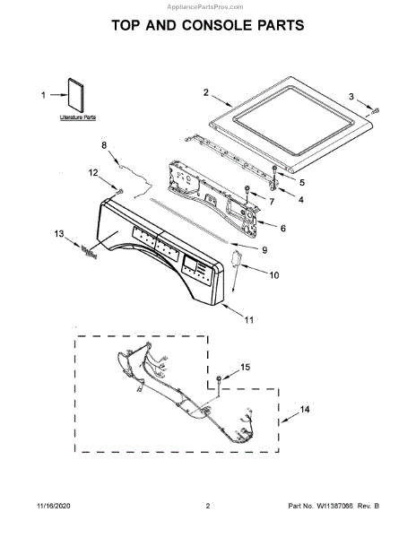 The Control Panel is an OEM part for Whirlpool dryers. It features a display screen, buttons, and controls that allow you to select different drying cycles, adjust temperature settings, and customize options such as timed drying or sensor drying.