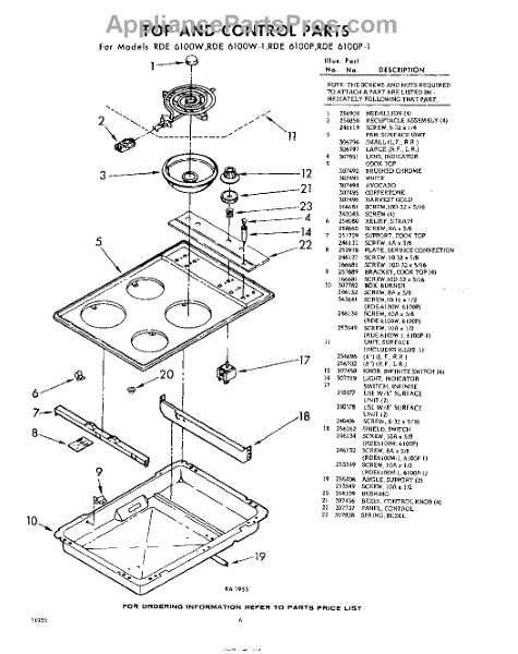 Parts for Whirlpool RDE6100W: 06 - Top And Control Parts