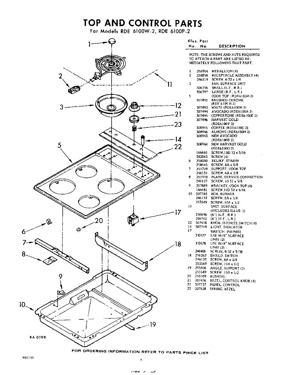 Parts for Whirlpool RDE6100W2: 06 - Top And Control Parts