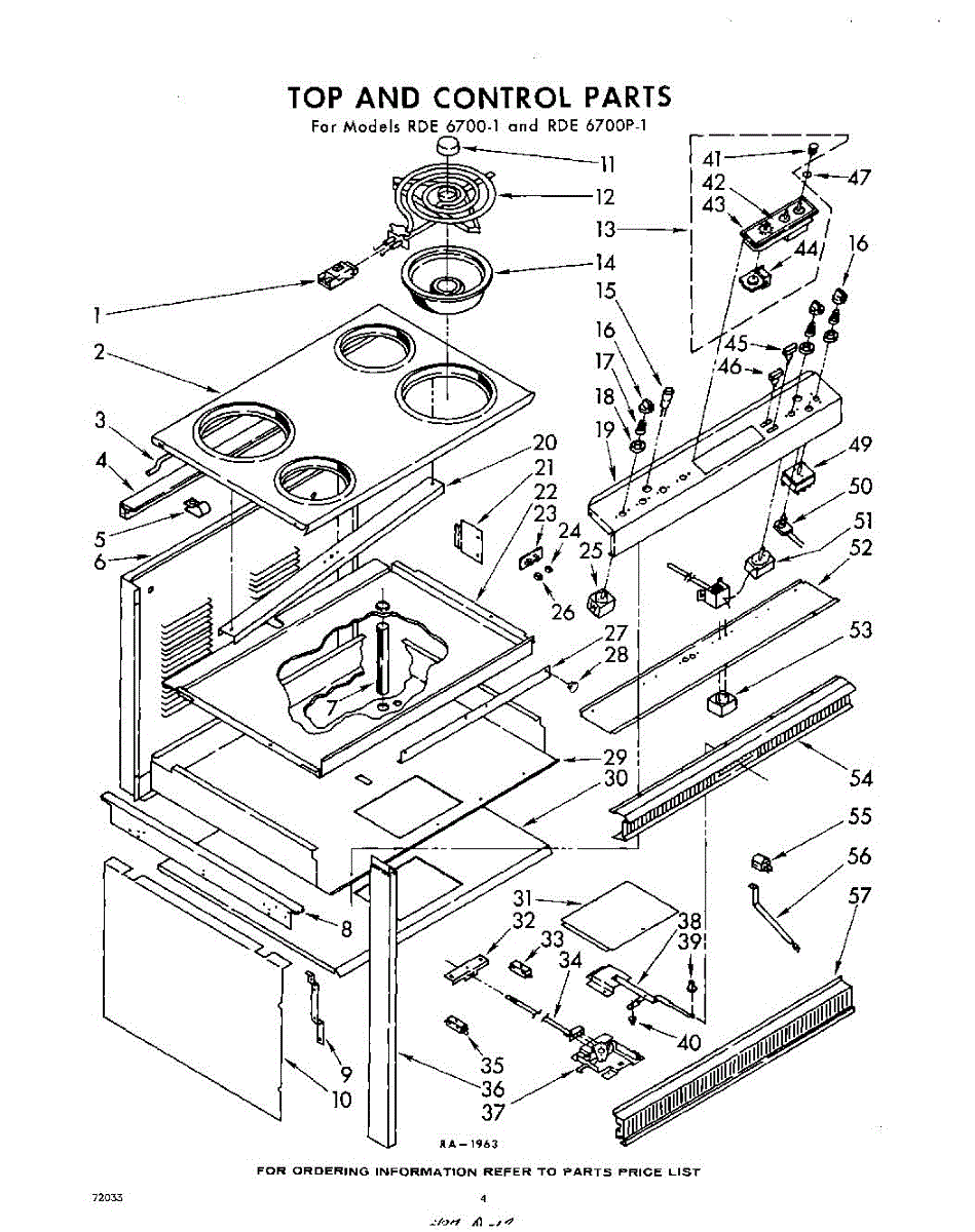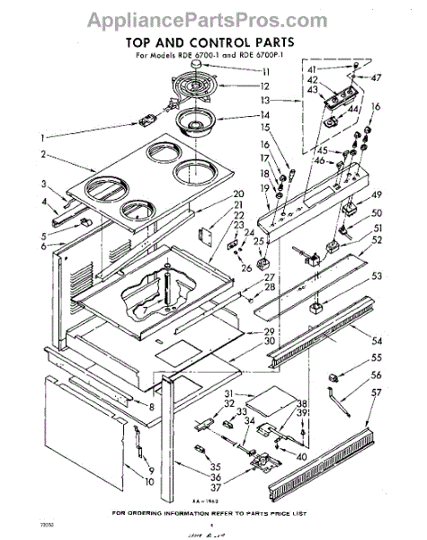 Parts for Whirlpool RDE6700W1: 04 - Top And Control Parts