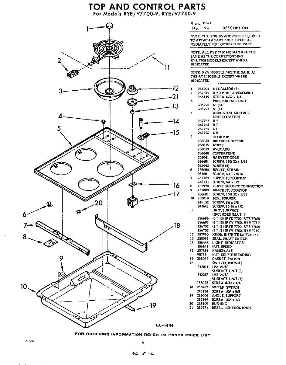 Parts for Whirlpool RYV7700P9: 06 - Top And Control Parts