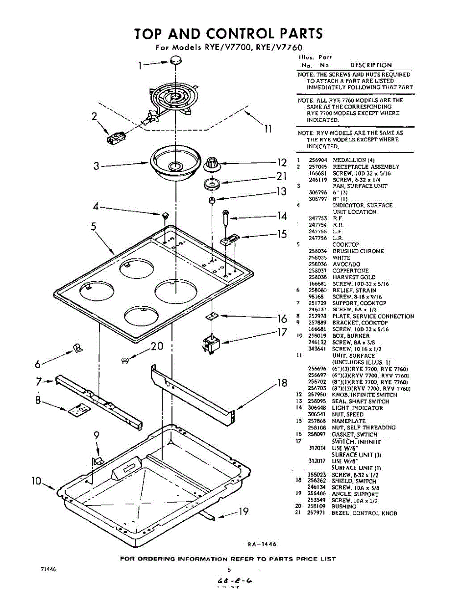 Parts for Whirlpool RYV7760P: 06 - Top And Control Parts