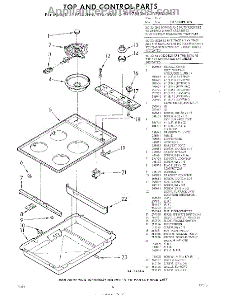 Parts for Whirlpool RYV7860H2: 06 - Top And Control Parts