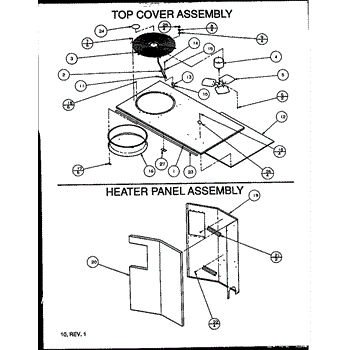 Parts for Amana PCA36B0004A/P1153605C: Top Cover Assembly / Heater Panel Assembly Parts