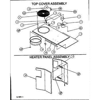 Parts for Amana PHA60B0003B/P1153908C: Top Cover Assembly / Heater Panel Assembly Parts