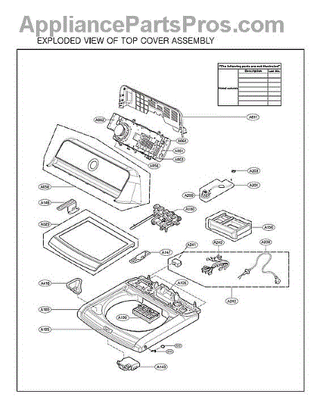 Parts for Lg WT7005CW/03: Top Cover Assy Parts
