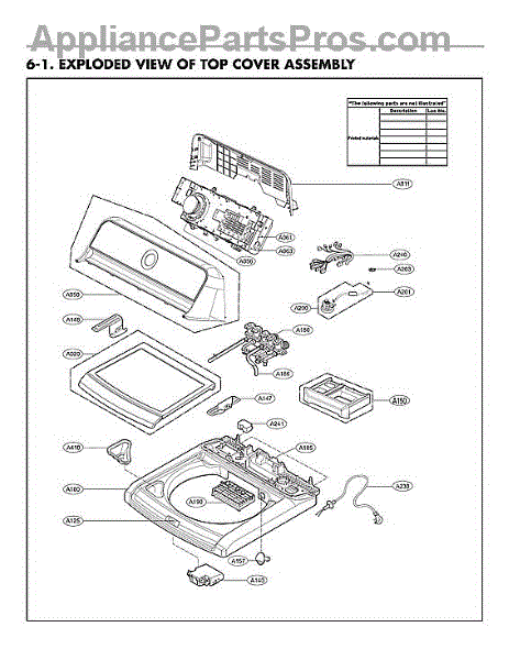 Parts for Lg WT7060CV/00: Top Cover Assembly Parts