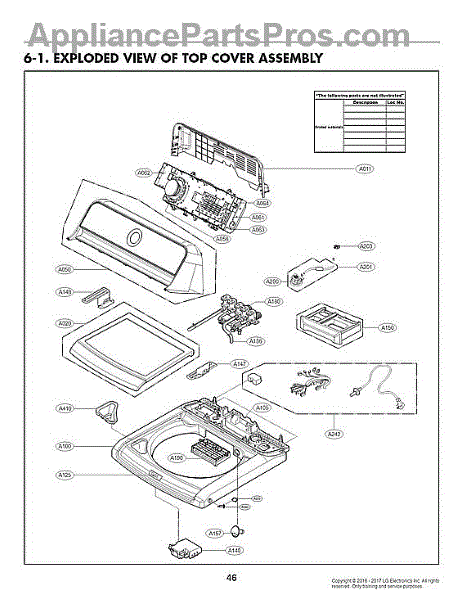 Parts for Lg WT7405CW/00: Top Cover Assy Parts