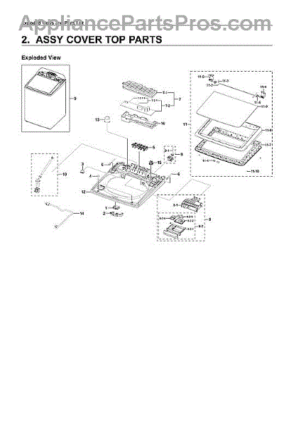 The Washer Cover Top Assembly is designed to restore the top cover of your Samsung washer, ensuring a secure and stylish fit. This genuine OEM part guarantees compatibility with a range of Samsung washer models, providing durability and reliable performance. Crafted from high-quality materials, the cover top helps protect your washer from dust and debris while enhancing its overall appearance. Easy to install, this cover top assembly allows you to seamlessly replace a cracked, missing, or damaged part, maintaining your appliance's functionality. With the Washer Cover Top Assembly, you can confidently keep your washer in excellent condition and enjoy the dependable performance Samsung is known for.