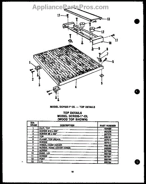 Parts for Caloric DCR-211-1W-OL: Top Details (Dcr-225-1A-Ol) (Dcr-225-1L-Ol) (Dcr-225-1H-Ol) (Dcr-225-1C-Ol) (Dcr-225-1W-Ol) Parts