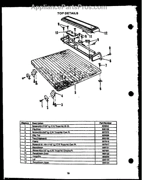 Parts for Caloric DCS-415-1D: Top Details Parts