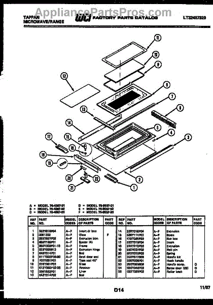 Parts for Frigidaire 76-8967-66-03: 11 - Top Door Parts