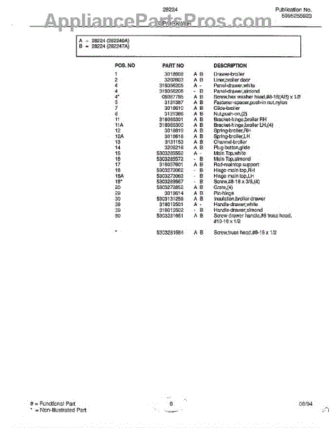 Parts for Frigidaire 282240A: Top / Drawer Page 2 Parts