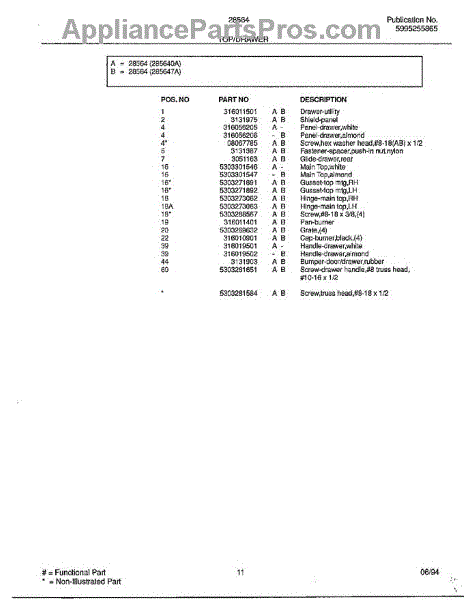 Parts for Frigidaire 28564: Top / Drawer Page 2 Parts