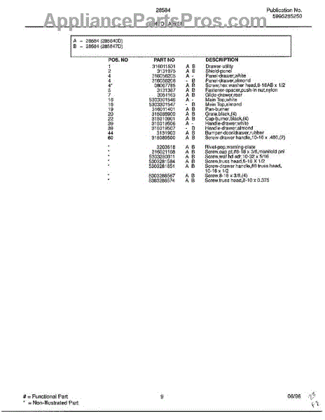 Parts for Frigidaire 285847D: Top / Drawer Page 2 Parts