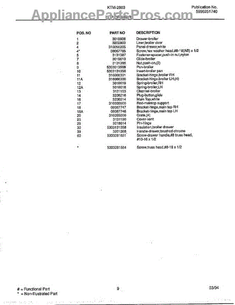 Parts for Frigidaire KTM-2803: Top / Drawer Page 2 Parts
