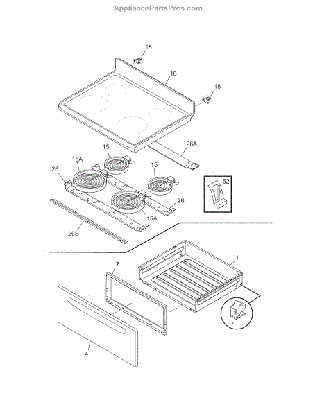 Parts for Crosley CCRE360GWWA: Top / Drawer Parts