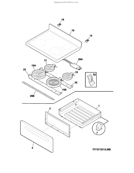 Parts for Crosley CRE3580QWC: Top / Drawer Parts