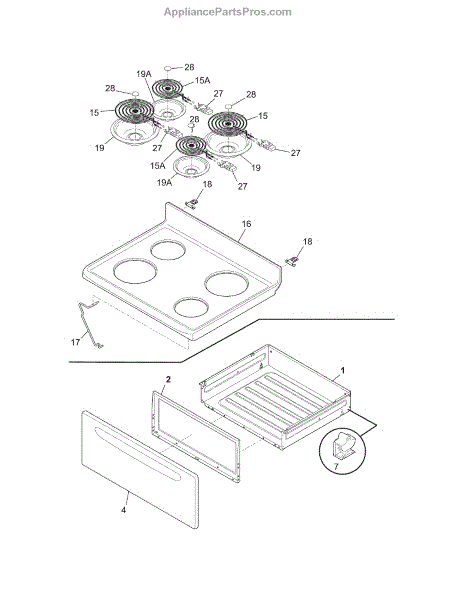 This is a Frigidaire main top for electric ranges. It sits beneath and holds the range's heating elements. If this part is damaged, it's usually obvious. It may dent or in some extreme cases, rust, and should be replaced if it's no longer able to hold heating elements.Before installing this part, make sure that power to the stove is cut, and do not begin repairs until the range is completely cool. A screwdriver, nut driver, and small dowel rod may be needed to install this part. Start by removing each heating element and drip pan. The old cooktop should be held in place with a number of screws or mounting brackets, the first of which may need to be accessed from inside the oven. Mounting hardware must be removed from the old cooktop and installed in the new one before putting the new cooktop in place.This is a genuine OEM part compatible with ranges from Frigidaire brands, including Electrolux, Frigidaire, Gibson, Kelvinator, Westinghouse, and others. This product includes no additional hardware.