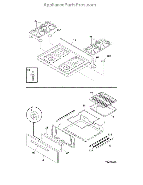 Parts for Crosley CRG3140GWWC: Top / Drawer Parts