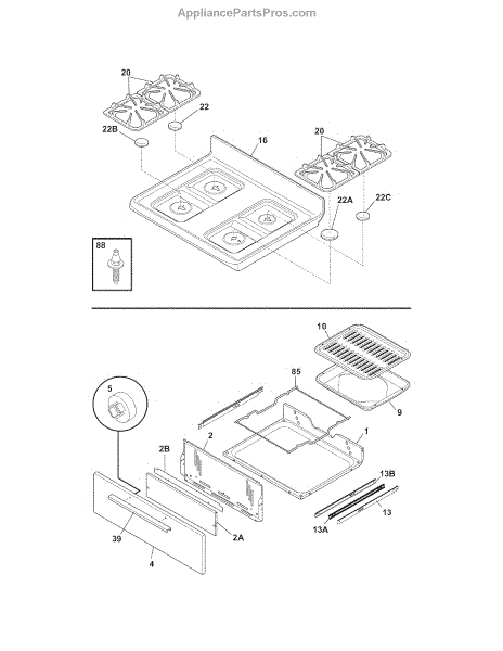Parts for Crosley CRG3160GBBA: Top / Drawer Parts