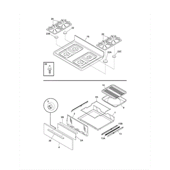 Parts for Crosley CRG3160GWWB: Top / Drawer Parts