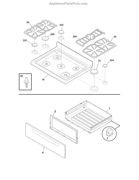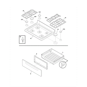 Parts for Crosley CRG3490GWWF: Top / Drawer Parts