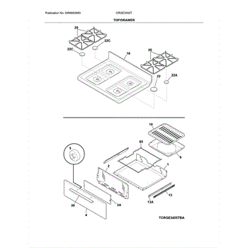 This main top is the upper cooktop panel that covers and protects the range's burners and internal components while providing a stable surface for cookware. It restores the cooktop's appearance and containment of spills. What it does: