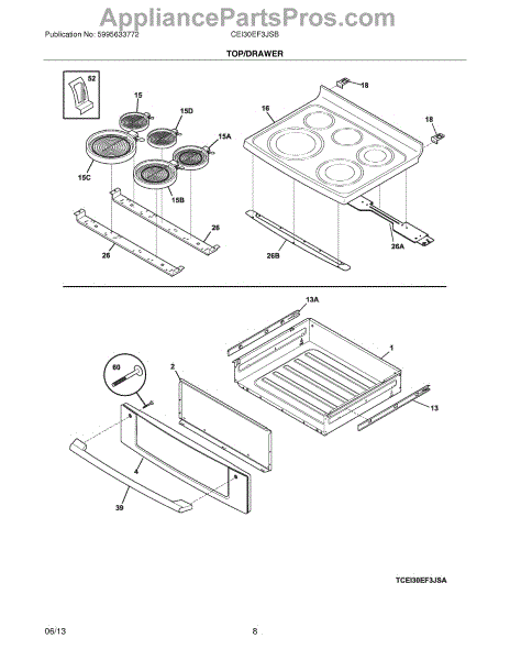 Parts for Electrolux CEI30EF3JSB: 07 - Top / Drawer Parts