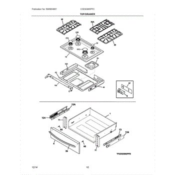 This main top assembly replaces the cooktop surface to restore a flat, secure mounting area for burners and controls. It helps improve appearance and prevents food and spills from entering the cabinet below. What it does: