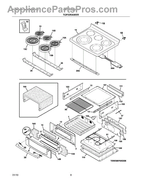This Main top assembly replaces the upper cooking surface on compatible ranges to restore a secure, flat surface for burners and cookware. It delivers a clean, finished appearance and proper support for surface elements. What it does: