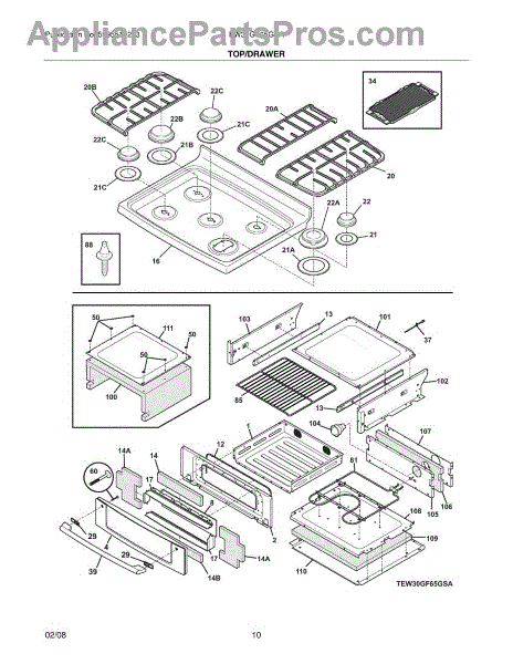 Parts for Electrolux EW30GF65GSA: 09 - Top / Drawer Parts